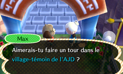 – Le village témoin de L’ADJ, vous permet de visiter le village des personnes que vous aurez rencontré via Street-pass (ce qui donne un aspect social à ce jeu) :