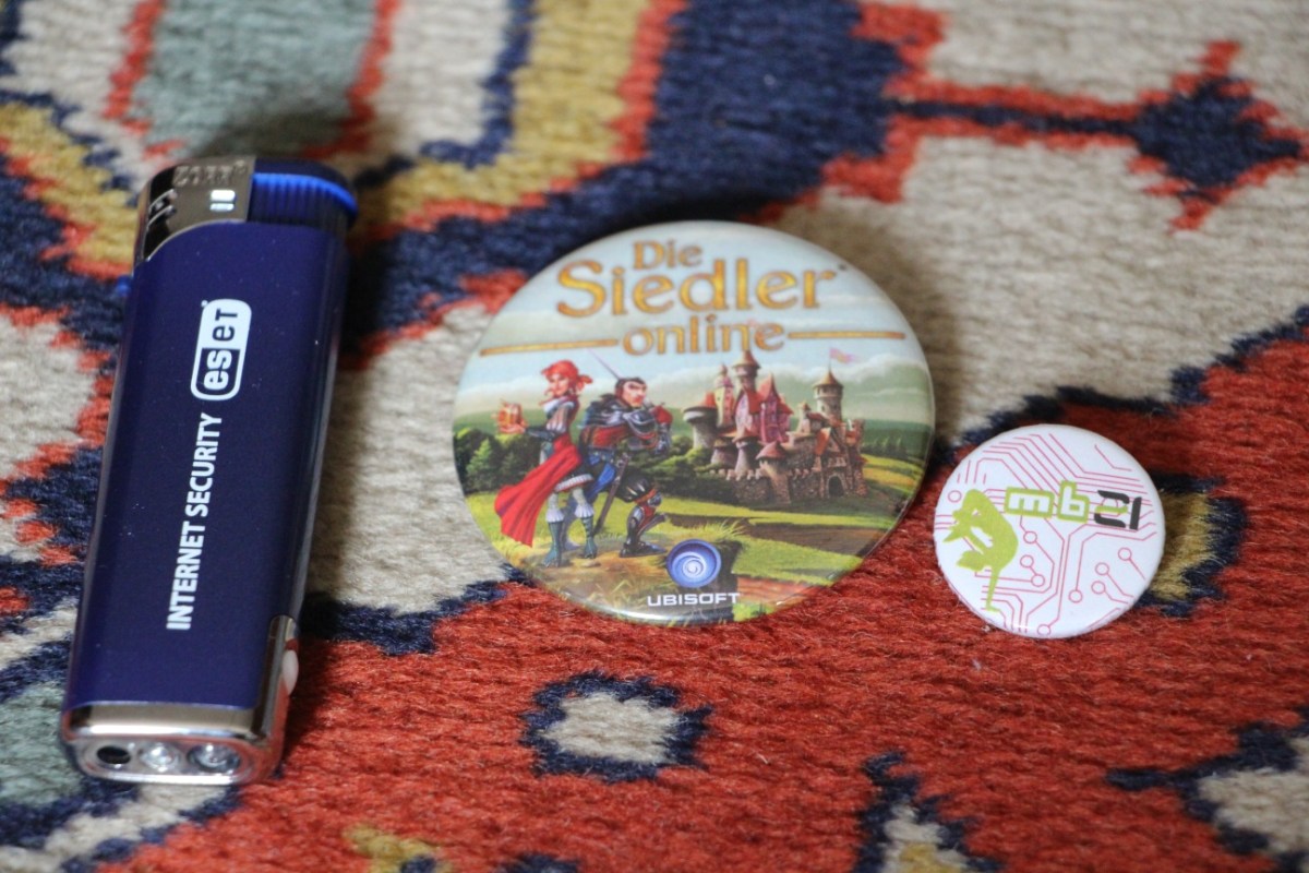 IMG_6669 Previous Next Publié août 29, 2013 à 1296 × 864 dans Gamescom 2013, jour presse – Compte rendu un briquet qui fait aussi lampe torche, et deux pins