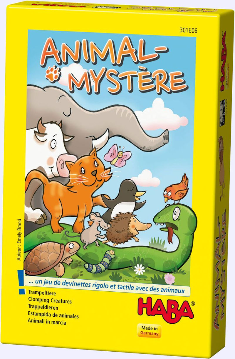 Animal Mystère Un jeu d’Emely Brand, illustré par Thies Schwarz, édité par Haba À partir de 6 ans, pour 3 à 5 joueurs, durée moyenne : 15 minutes – Prix conseillé 11,90€